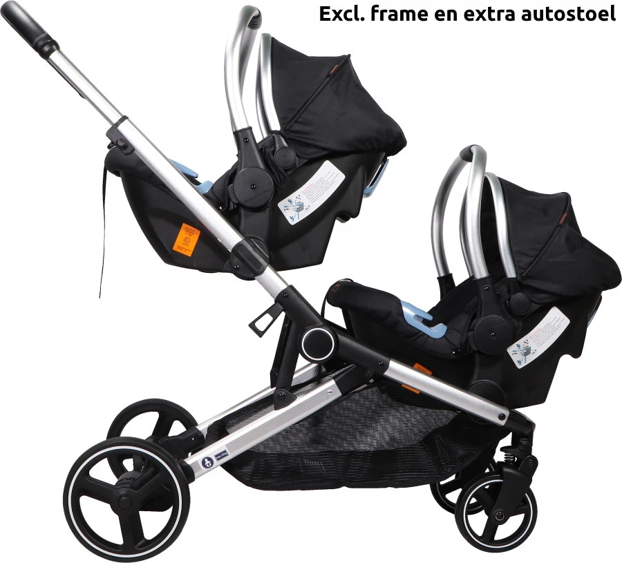 Op het frame van de Amigo duowagen (niet meegeleverd, apart verkrijgbaar) kan je één of twee autostoelen plaatsen. Zo kun je er ook gemakkelijk een tweeling kinderwagen van maken! De autostoel kan zowel naar binnen als naar buiten op het frame geplaatst worden en je kan daarnaast ook kiezen of je hem onder of boven wil plaatsen.Â