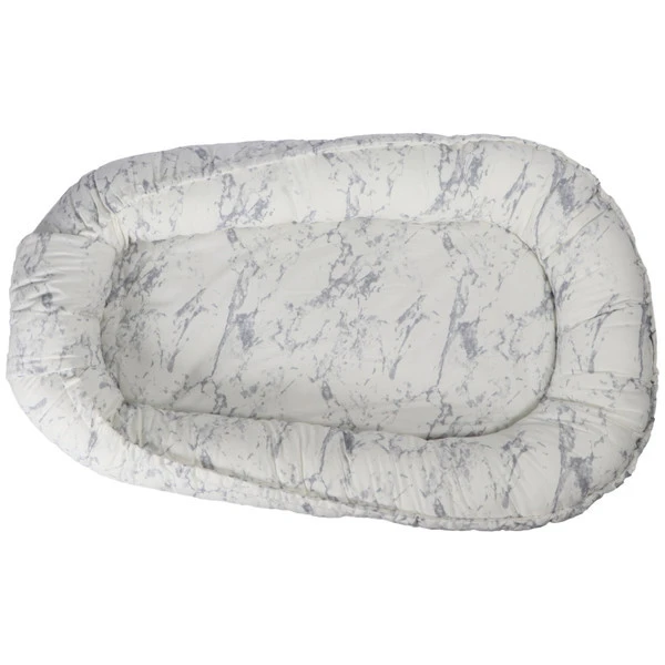 Dit babynestje is voorzien van een stijlvol marmer motiefje en gemaakt van kwalitatief zeer goed materiaal. De buitenkant van dit nestje is gemaakt van 100% katoen en de vulling is gemaakt van 100% polyester. Mocht het nestje vies zijn geworden dan kan je hem met de hand wassen op 40ºC. Dankzij de koordjes kun je de uiteinden van het babynestje makkelijk dicht binden. Het extra lapje met drukkers zorgt ervoor dat je kleine niet bij de touwtjes kan.