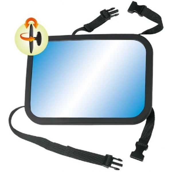 De spiegel is gemaakt van breukvast materiaal en is daardoor erg veilig in gebruik. De spiegel is door middel van riemen stevig te bevestigen aan de hoofdsteun. Het speciale materiaal aan de achterkant zorgt ervoor dat de spiegel niet verschuift tijdens de rit. Kortom: een veilige en praktische spiegel voor iedere auto!